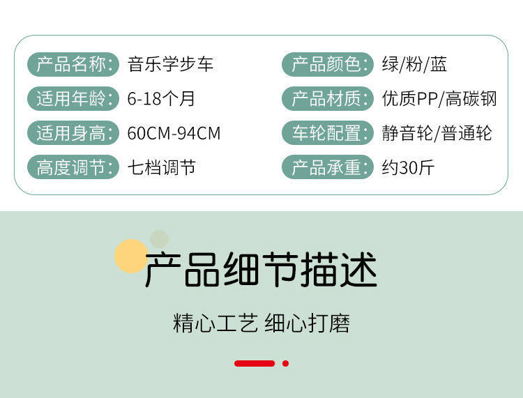 color classification: Pink 7th gear adjustment without music Light green 7th gear adjustment without music Sky Blue 7th gear adjustment without music Sakura Pink Seven Speed Adjustable Universal Wheel Light Music Maka Green Seven Speed Adjustable Universal Wheel Light Music Sky Blue Seven Speed Adjustable Universal Wheel Light Music Cherry blossom powder seven speed adjustable universal wheel foot pad gift light music second change dining plate Maka Green 7-speed Adjustable Universal Wheel Foot Mat Gift Light Music Second Changing Dining Plate Sky Blue Seven Gear Adjustable Universal Wheel Foot Mat Gift Light Music Second Change Dining Plate Cherry blossom powder seventh gear adjustment mute wheel foot mat gift light music second change dining plate Maka Green 7-speed Adjustable Mute Wheel Foot Mat Gift Light Music Seconds Change Dining Plate Sky Blue 7th gear adjustment mute wheel foot mat gift light music second change dining plate Sakura Pink Silent Wheel Light Music Pusher Gift 7-speed Adjustment Second Change Dining Plate Maka Green Mute Wheel Light Music Pusher Gift 7-speed Adjustment Second Change Dining Plate Sky Blue Silent Wheel Light Music Push Gift 7-speed Adjustment Second Change Dining Plate Randomly designed disabled infants and children with no wheels prohibited color note Cherry Blossom Pink Music Toy Foot Mat Push Handle Sunshade Gift 7-speed Adjustment Second Change Meal Maka Green Music Toy Foot Mat Push Handle Sunshade Gift 7-speed Adjustment Second Change Meal Sky Blue Music Toy Foot Mat Push Handle Sunshade Gift 7-speed Adjustment Second Change Meal Sakura Pink Universal Silent Wheel Light Music Gift 7-speed Adjustable Second Changing Dining Plate Maka Green Universal Mute Wheel Light Music Gift 7-speed Adjustable Second Changing Dining Plate Sky Blue Universal Mute Wheel Light Music Gift 7-speed Adjustable Second Changing Dining Plate Cherry blossom powder universal silent wheel dining plate with seven gear adjustment Sky Blue Universal Mute Wheel Dining Plate with 7-speed Adjustment Maka Green Universal Mute Wheel Dining Plate with Seven Gear Adjustment
